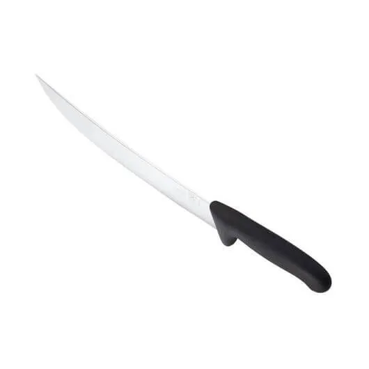 Mercer is a trusted name when it comes to professional cutlery and the Mercer 10" Cimeter Knife is no exception. Having a high carbon stainless steel blade and black non-slip polypropylene handle, this knife is suited for cutting a variety of meats from chicken to pork. Perfect for precise cutting of brisket, sirloin or shank. This knife is used for cutting through thin/soft bones or through hard vegetables. NSF approved. Made in Germany.