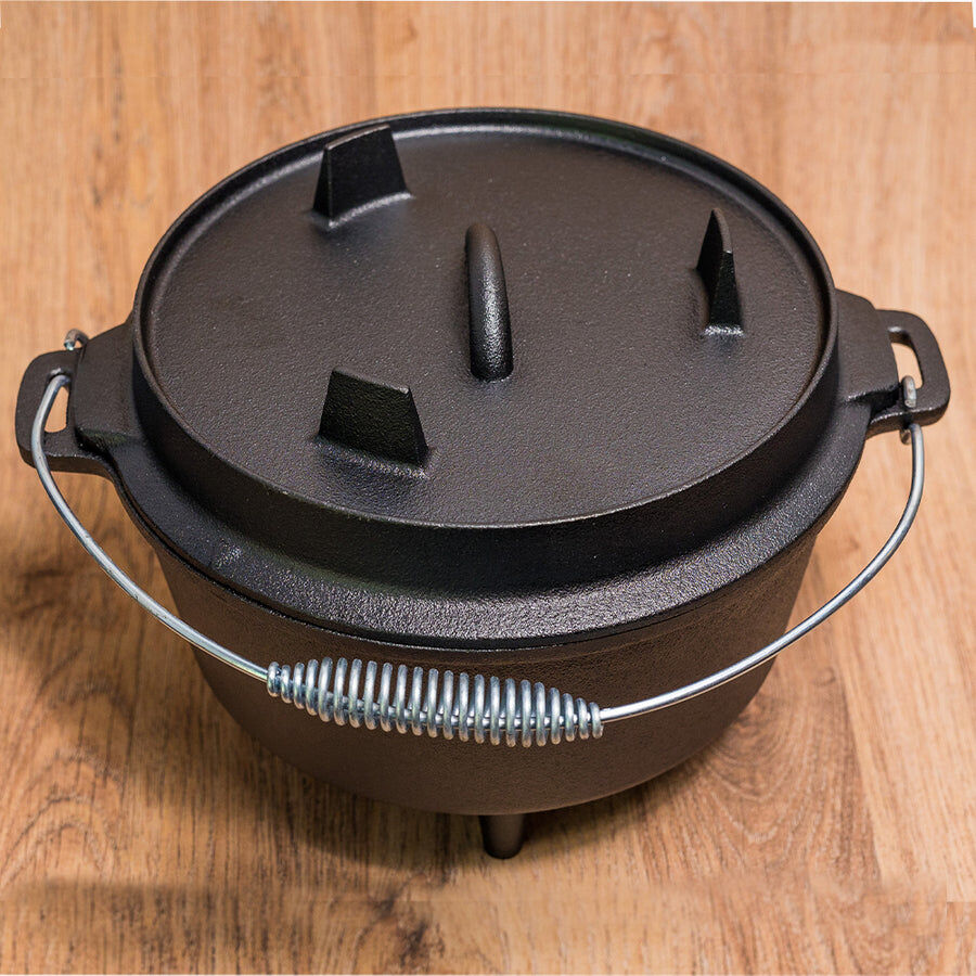 Elevate your cooking with a pre-seasoned, heavy-duty cast iron Dutch oven and skillet, perfect for baking, slow-cooking, and searing.
