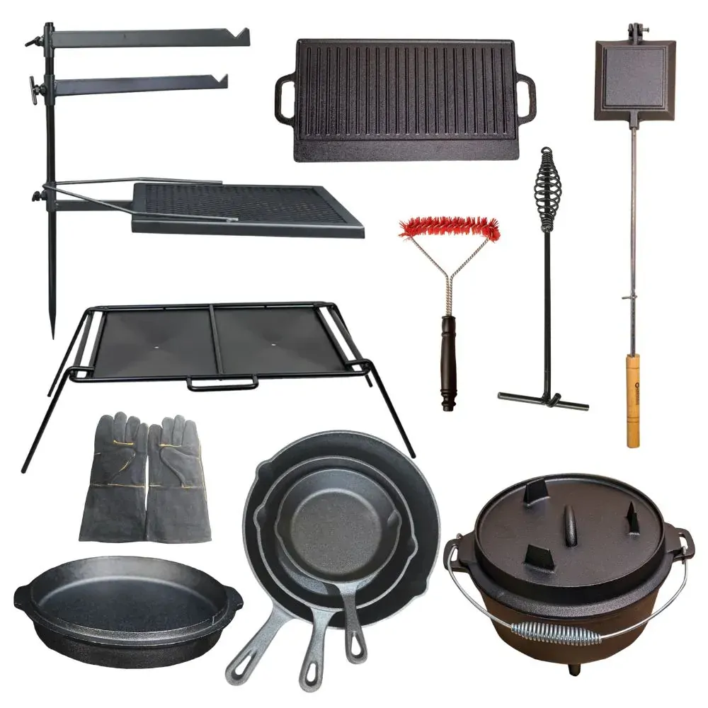 The 12 Pieces Camping Cookware Combo Set gives you every tool you need to create incredible meals in the great outdoors. From sizzling bacon breakfasts to slow-cooked stews, this premium set combines cast iron cookware, portable grills, and essential campfire accessories built to handle real flames, rough conditions, and big appetites.