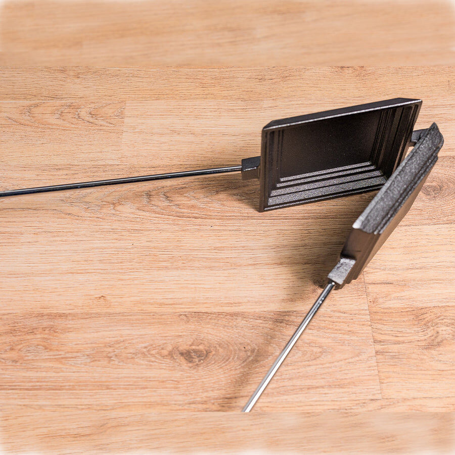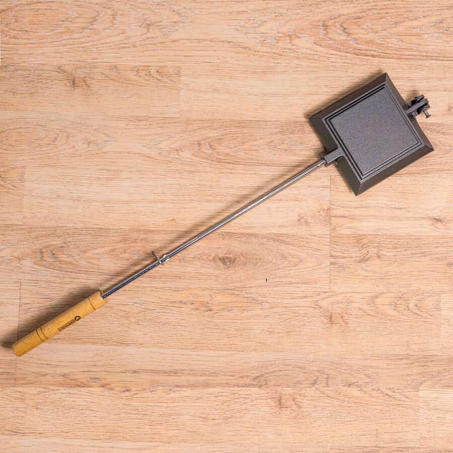Make perfect toasted sandwiches with this cast iron jaffle iron, featuring long wooden handles for safe handling.