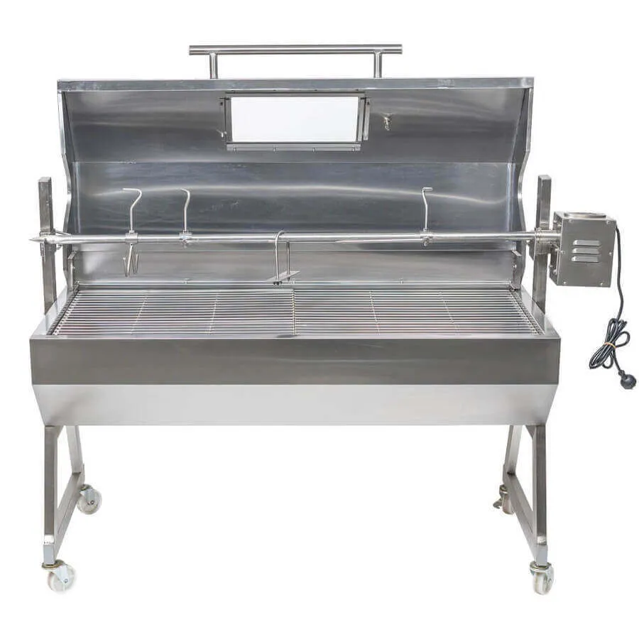 The 1200 Stainless Hooded Spartan Spit Rotisserie is a solid and sturdy stainless steel spit roaster capable of cooking whole animals