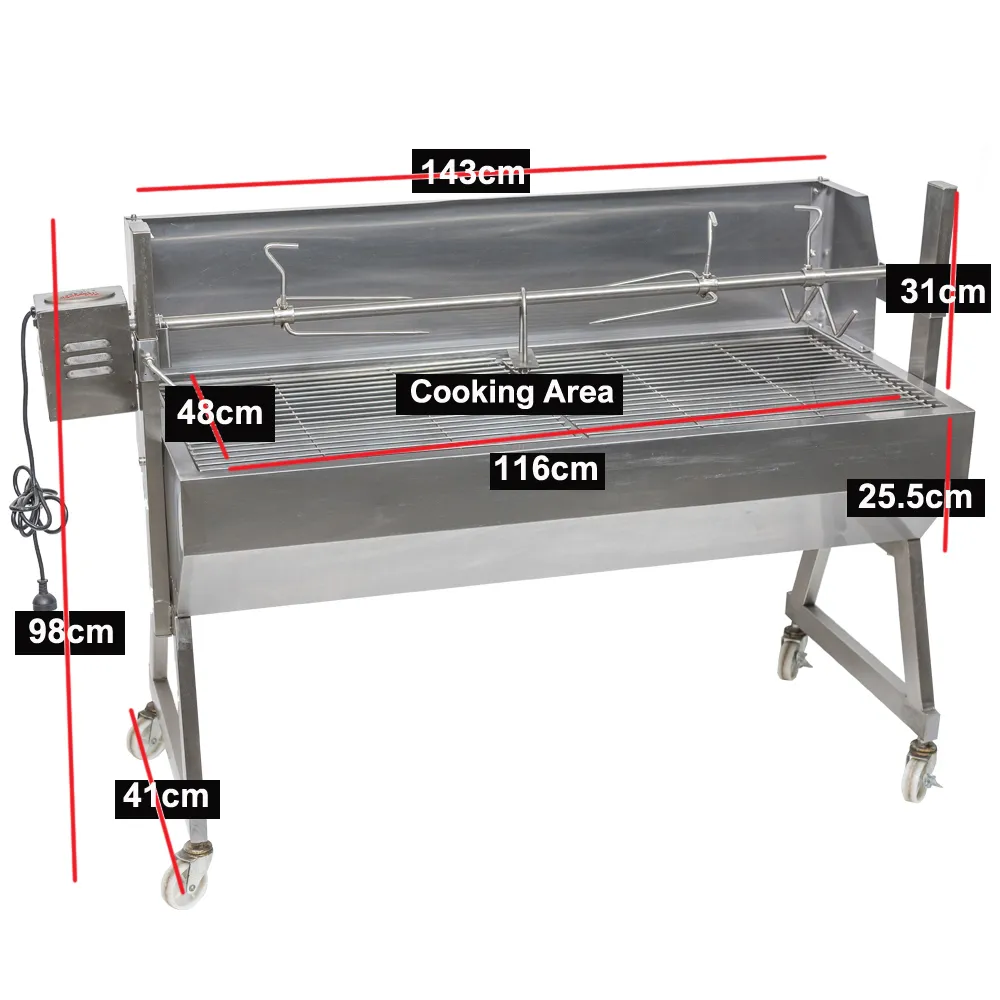 The Spartan 1200 Stainless Steel Spit Roaster was developed and tested for over 12 months to ensure it delivers unbeatable value without compromising on quality. Perfect for gyros, chickens, roasts or small animals, it’s a durable, versatile, and affordable choice for backyard entertainers.