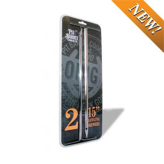 Using the Pit Barrel 15 inch Hanging Skewers - Set of 2 brings another dimension to your Pit Barrel cooking experience. Cook vegetables, chicken breasts, beef and pork medallions, baked potatoes and more.