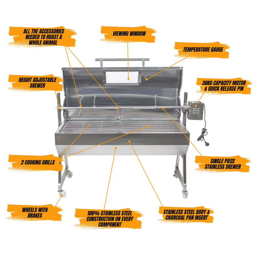 Flaming Coals 1500 Stainless Steel Spartan Spit Roaster Pro SP070-1500-PROBUNDLE RRP $1,870.95 Now $1,699.00 You Save $171 See Options Sale