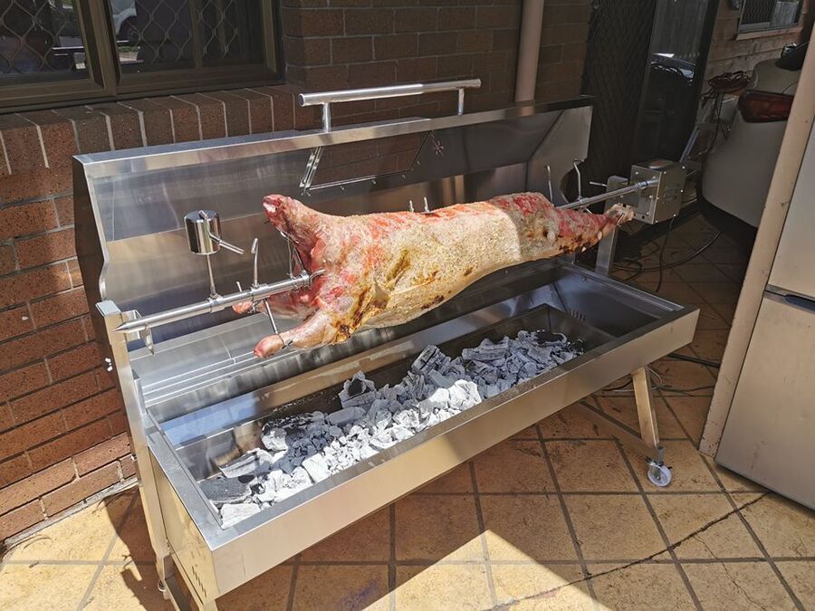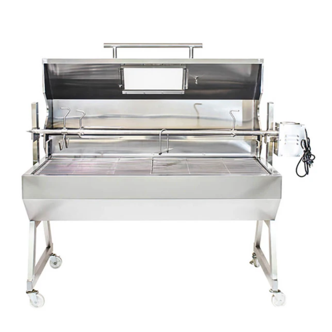 The Hooded Spartan Stainless Spit Rotisserie 1500 by Flaming Coals is built tough and ready for anything. Designed to handle the largest of animals, this heavy-duty roaster has become a favourite for restaurants, cafes, butchers, and backyard cooks wanting to impress with whole lamb roasts at Easter or big family gatherings. It’s one of the best value spit roasters in Australia and delivers consistent results every time.