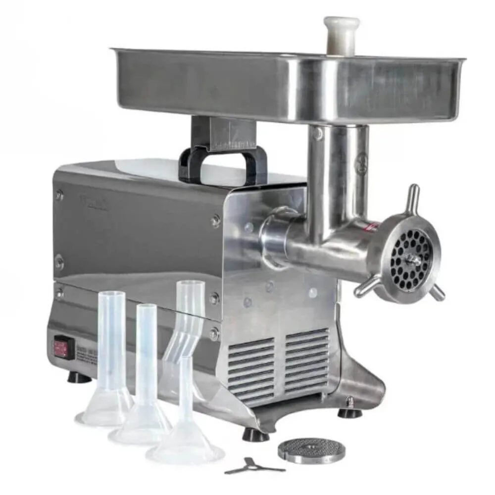 Each unit comes with stainless steel mincer knife, two plates (6mm and 10mm), a stomper, and three stuffing tubes (15mm, 25mm, 35mm). With these inclusions, you have everything you need to prepare sausages, patties, or mince right out of the box.