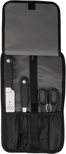 Designed for maximum performance and comfort, this Meat Roast Carving Set provides today's chefs with a comfortable, efficient and safe means of having their carving knife set with them wherever they go. The ergonomic Santoprene handles are moulded to offer superior comfort and the material used in the handle construction provides a non-slip grip even with wet hands. The high carbon German steel blades are precision-forged for better strength and durability with superior resistance to staining, corrosion and discolouration.