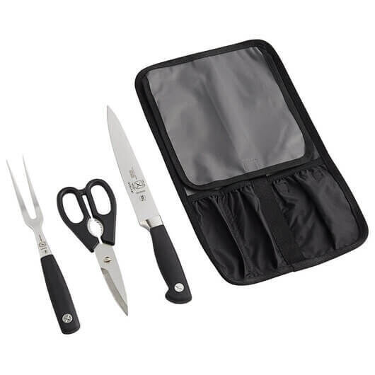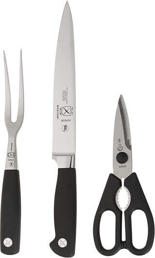 Mercer Culinary|4pc Forged Carving Set is a convenient Carving kit that provides the key knives and shears needed in any kitchen in one simple item package.