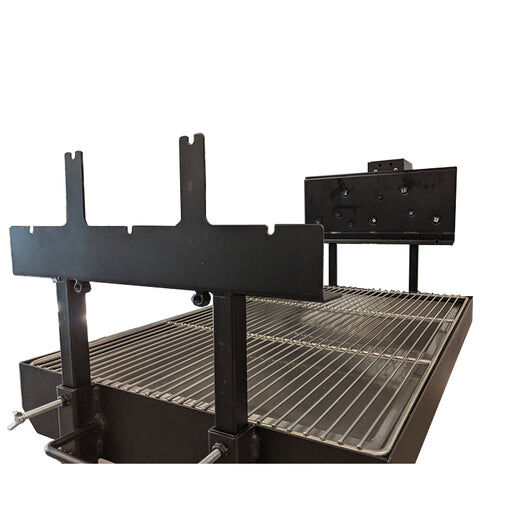 Are your building your own spit or do you already own one but need those extra skewers so you can really cook up a feast? Our 5 Skewer Spit | Rotating Gear Mechanism + Support Side | Flaming Coals is exactly what you need. It adds the ability to cook on 5, 10mm diameter, height-adjustable, rotating skewers over charcoal on your spit. Great for gyros, chickens, large cuts and more. These 5 skewer Cyprus style rotating mechanisms also have built-in grill support brackets that let you rest a cooking grill across the charcoal and use it as a height-adjustable BBQ Grill