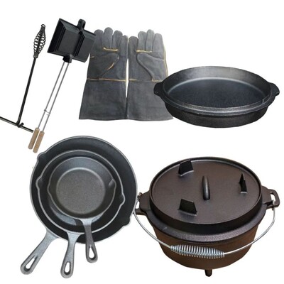 Crafted from heavy-duty pre-seasoned cast iron, every piece in this set delivers exceptional heat retention and even cooking. The Dutch Oven’s flanged lid allows you to place coals on top for full, even heat, while the lid itself doubles as a skillet for frying or searing. From tender stews to crispy breakfasts, your meals will have that rich, smoky campfire flavour every time.