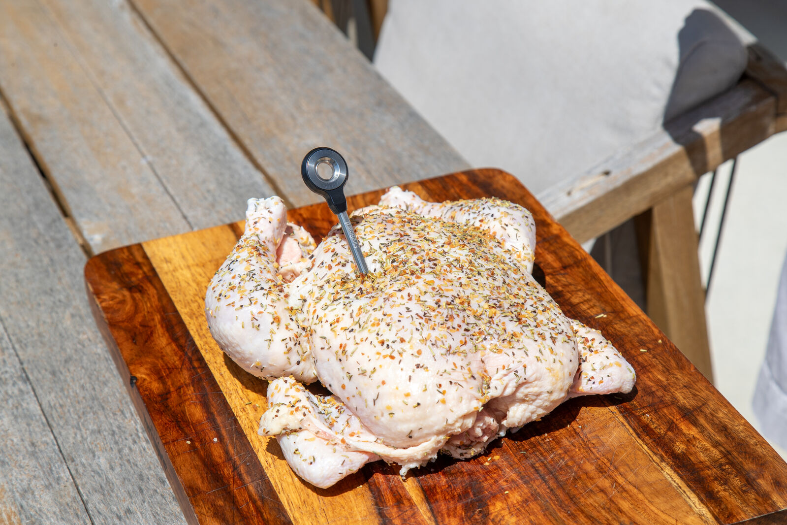 A wireless meat thermometer that does it all. The Pulse wireless probe will track your cook's internal temperature and the ambient temperature of the grill using two sensors - one near the tip, and one in the ceramic end. No wires are required.