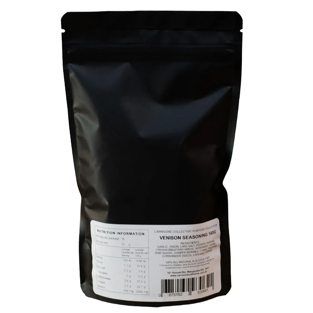 Enhance venison with Carnivore Collective Hunters Series Venison Rub. This all-natural, gluten-free blend of herbs and spices delivers bold, earthy flavours for the perfect wild game seasoning.