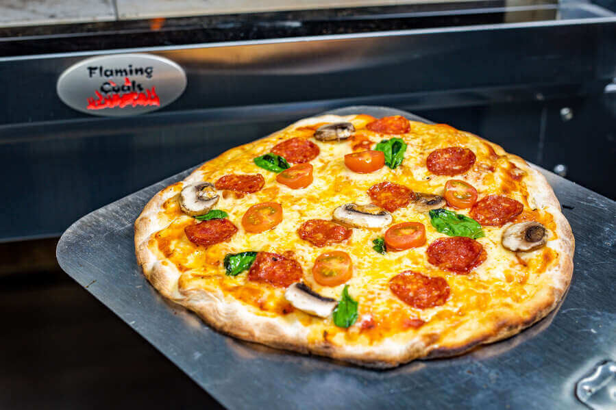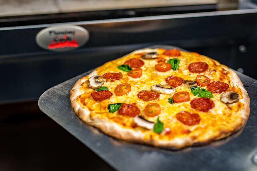 The Flaming Coals Aluminium Pizza Peel is used to easily place your pizzas in and out of your pizza oven minimising the risk of burning your hands next to that raging hot fire.