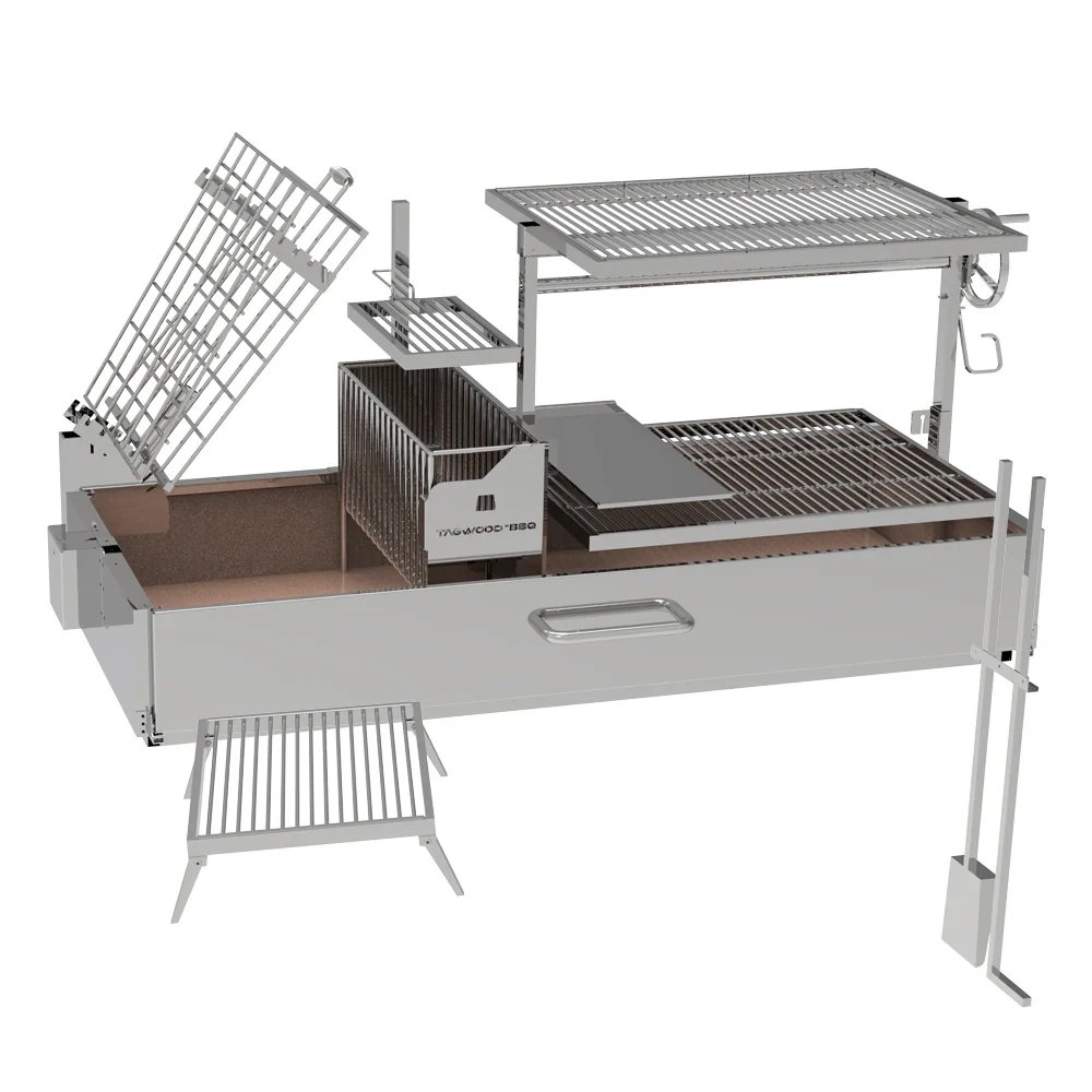 The Tagwood BBQ28SS Argentine Santa Maria Charcoal and Woodfired Gaucho Grill is built for serious asado cooking. Bring refined control, premium craftsmanship, and true fire cooking performance into your outdoor kitchen.