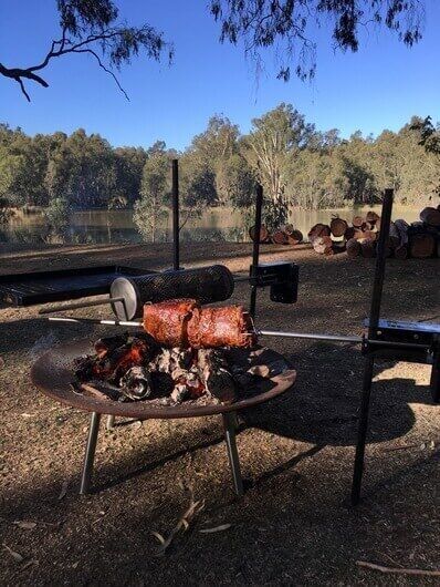 Introducing the Auspit Compact Portable Camping Spit Rotisserie Package-Silver. The Ultimate camping companion.