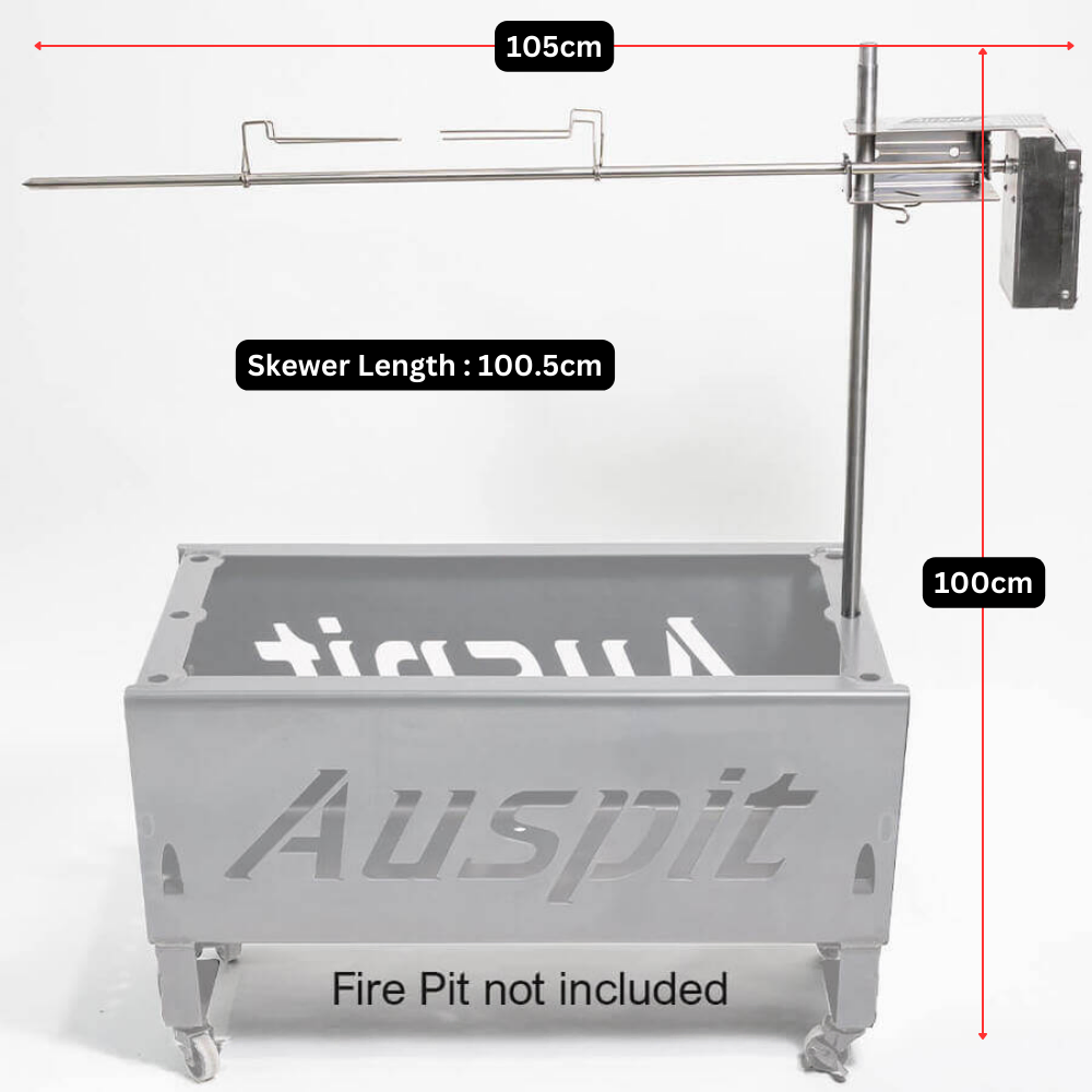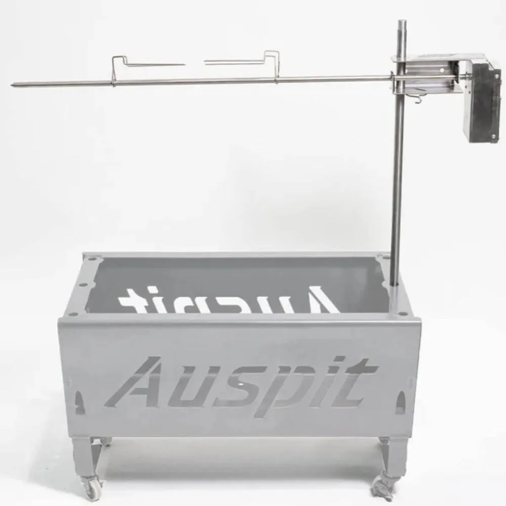 The Auspit Compact Portable Camping Spit Rotisserie Package - Silver is a high-performance, battery-operated spit roaster that makes outdoor cooking effortless. Capable of cooking up to 8kg of balanced meat, it’s ideal for camping, picnics, and backyard BBQs. Designed for simplicity and convenience, the Auspit allows you to swing your food away from the fire to carve, adjust, or baste your meat with ease. Perfect for anyone who loves outdoor cooking with minimal setup.