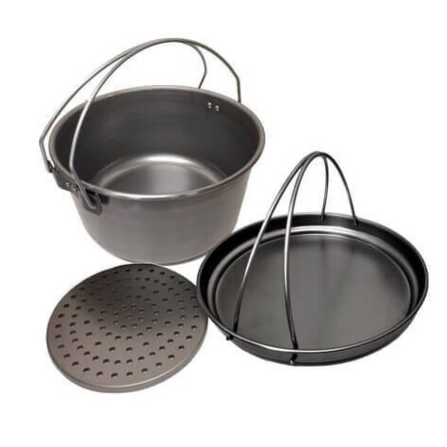 Uses Frypan, boiler, hanging pan, and camp oven all in one