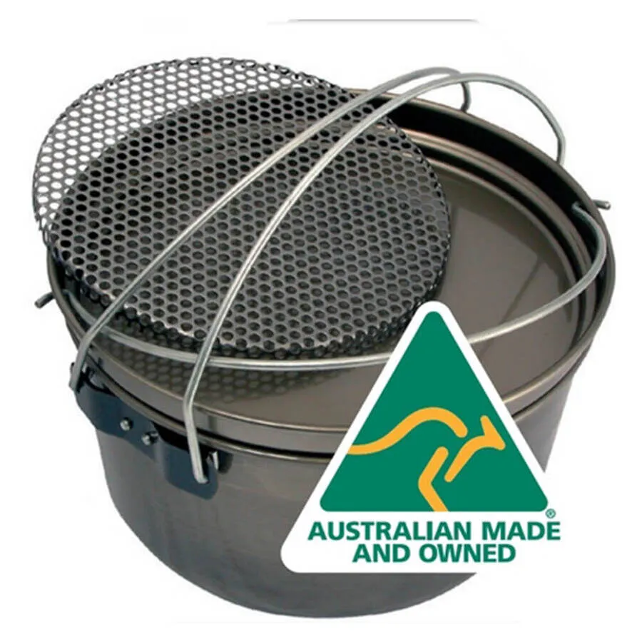 Manufactured right here in Australia, this camp oven reflects the country’s heritage of quality outdoor craftsmanship. Each oven is built to endure years of rugged bush cooking, delivering reliability, strength, and performance that’s been perfected for the great Australian outdoors.