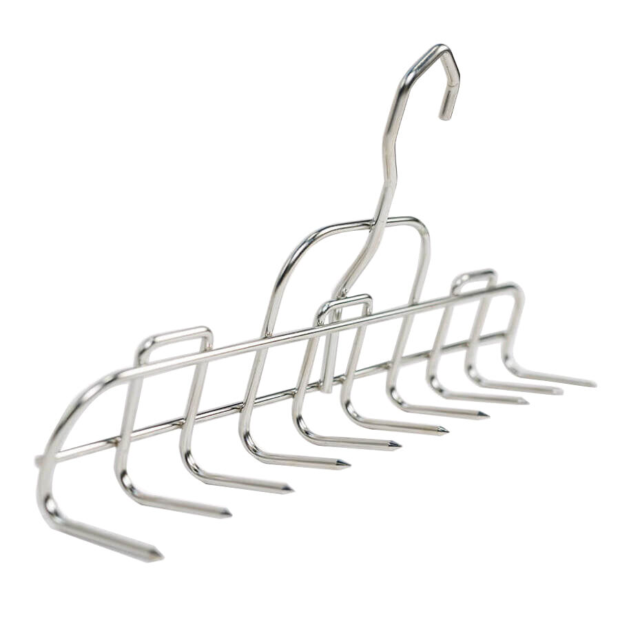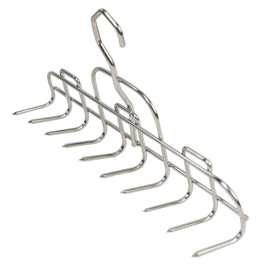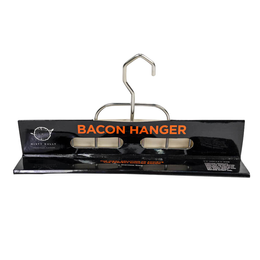 The Misty Gully Bacon Hanger is a high-quality stainless steel 10-pronged accessory that makes smoking bacon easier. It's also fantastic for smoking and hanging ribs. It's a great way to make the most of the space in your smoker or oven. The prongs are tough and sharp enough to penetrate even the toughest cuts of meat. Hanging your bacon while smoking also contributes to a softer, more tender final product. Simple to use and clean - a high-quality product that will take your bacon to the next level!