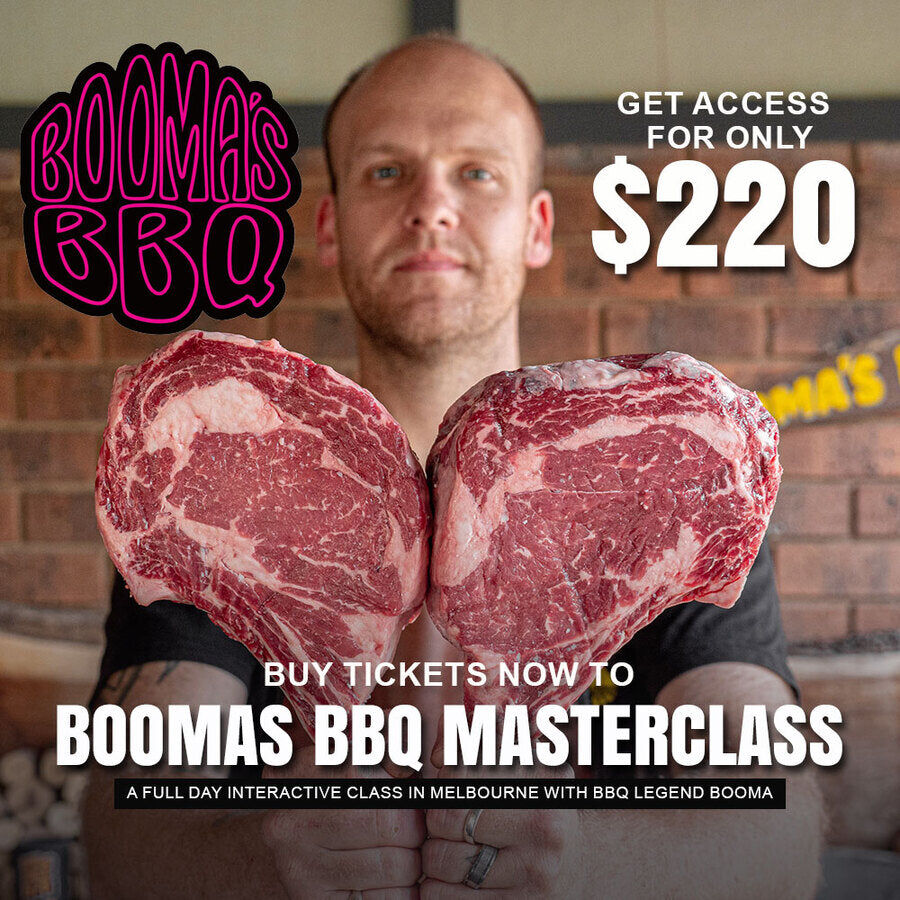 It's more than just a BBQ class, It's a Feast! Boomas BBQ is one of the most well-known barbecuers in Australia and a self-confessed BBQ addict. Booma is a competition barbecuer, guest star in Channel 7's Dippers Backyard BBQ Wars, a BBQ caterer, a creator of 4 outstanding BBQ rubs and 2022 BBQ personality of the year. There is no better man to teach you how to cook the best BBQ in town.