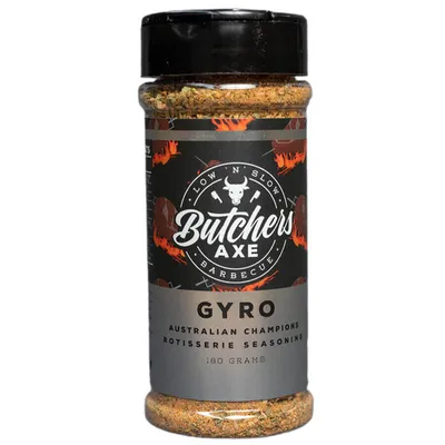 Butchers Axe Barbeque Gyros. Fire Meat and Gyro. When the juices fall and hit the white-hot coals, something special happens. Gyro will transport you to any part of the world where meat is slowly rotated over the fire. Gyro is great on souvlakia, kebabs, shawarma, charcoal chicken, and any other rotating meats! Gyros also go well with vegetables and other Mediterranean fares.