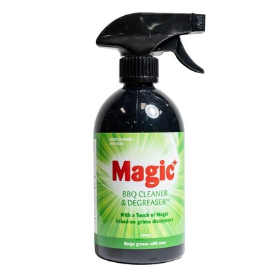 BBQ Magic BBQ Cleaner and Degreaser strips grease, grime, oil and food deposits from your BBQ plates and grills with ease. This non-caustic formula makes BBQ Magic safe to use in and around all food areas and ideal for use on cast iron, stainless steel as well as concrete and outdoor furniture.