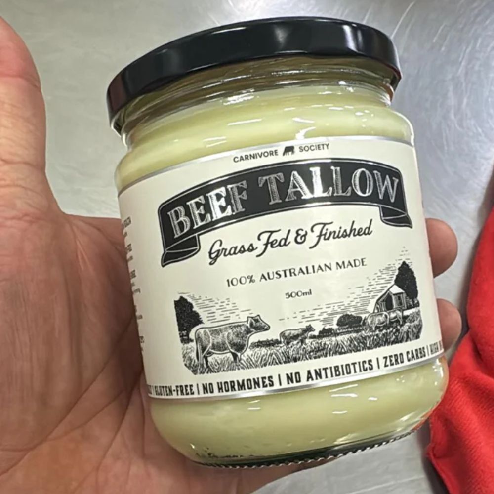 Pure Australian beef tallow from 100 percent grass fed and finished cattle. Clean, stable and ideal for high heat cooking, frying and roasting. No additives, mild flavour, perfect for carnivore, keto and paleo kitchens.