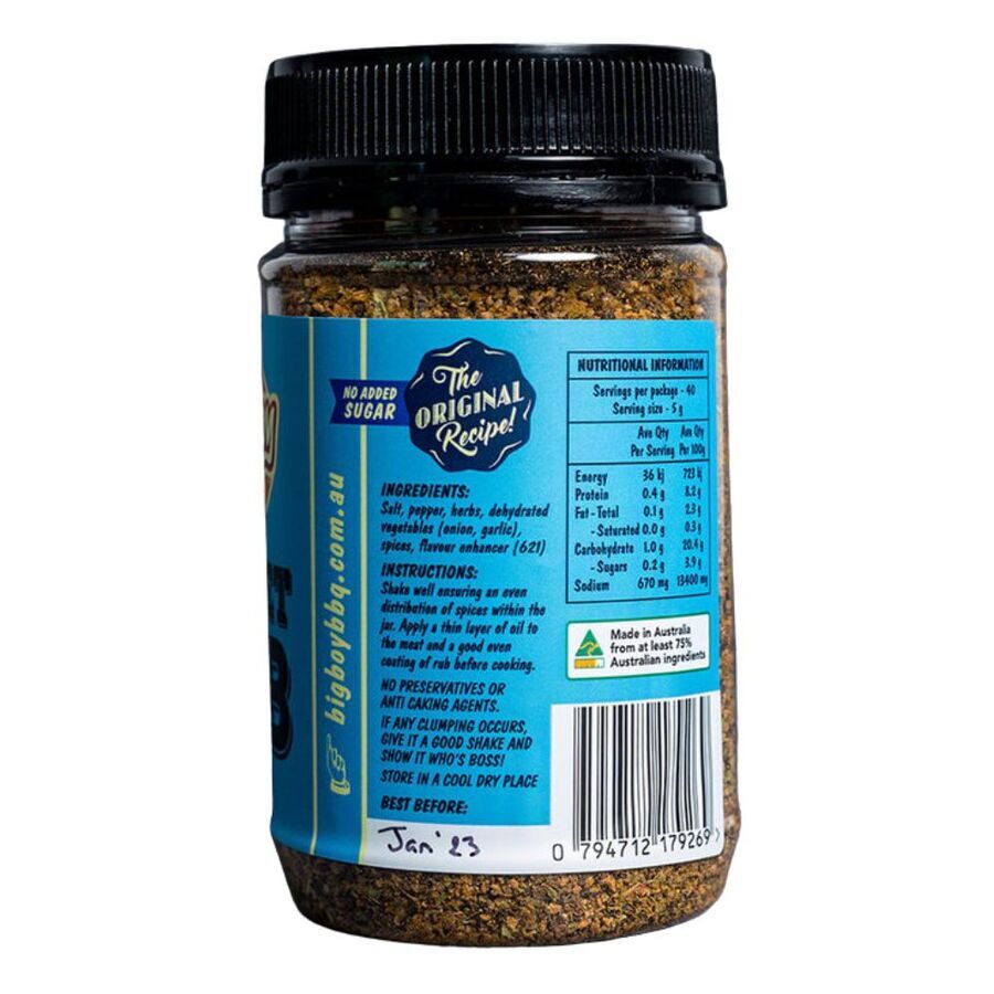 Big Boy BBQ Brisket Rub 200g. is the award-winning pepper herb rub from The Big Boy. Offer your barbecue a Texas-style makeover with an Aussie twist. Also delicious on beef, ribs, steak, and roast meat!