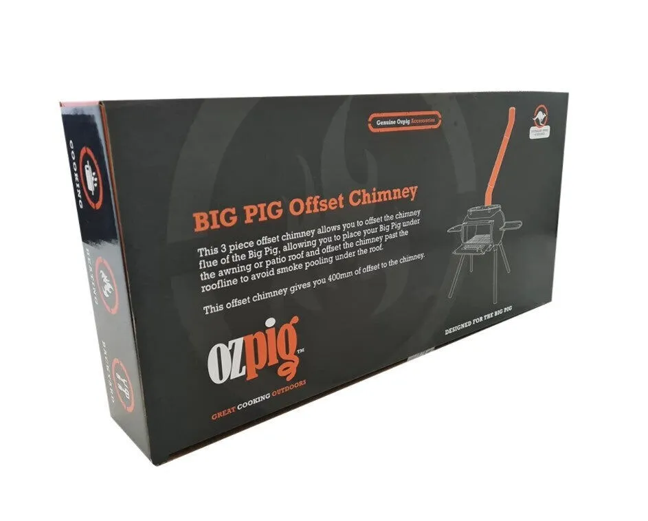 When using Big Pig in an undercover (but open) space or pergola area, and you need to redirect the smoke into an open-air, the Ozpig Big Pig offset chimney is ideal. Made of quality steel, the Big Pig offset chimney comes in three parts for simple assembling.