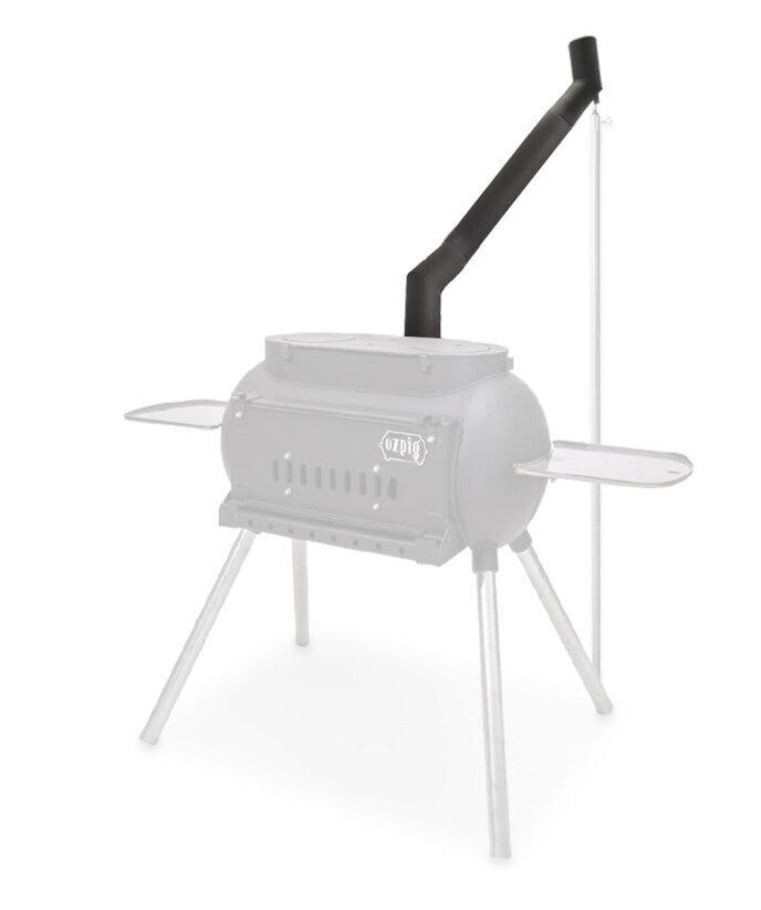 Add the components to the top of your current Ozpig Big Pig chimney and you will be able to funnel the smoke outside by 400mm. Simply line up the notches so that the locking tabs fit into each other for stable connection, and use a tent pole to secure the offset chimney to the ground - simply insert the spigot of your tent pole into the specially built input on the upper elbow part of your offset chimney, and you're ready to go!