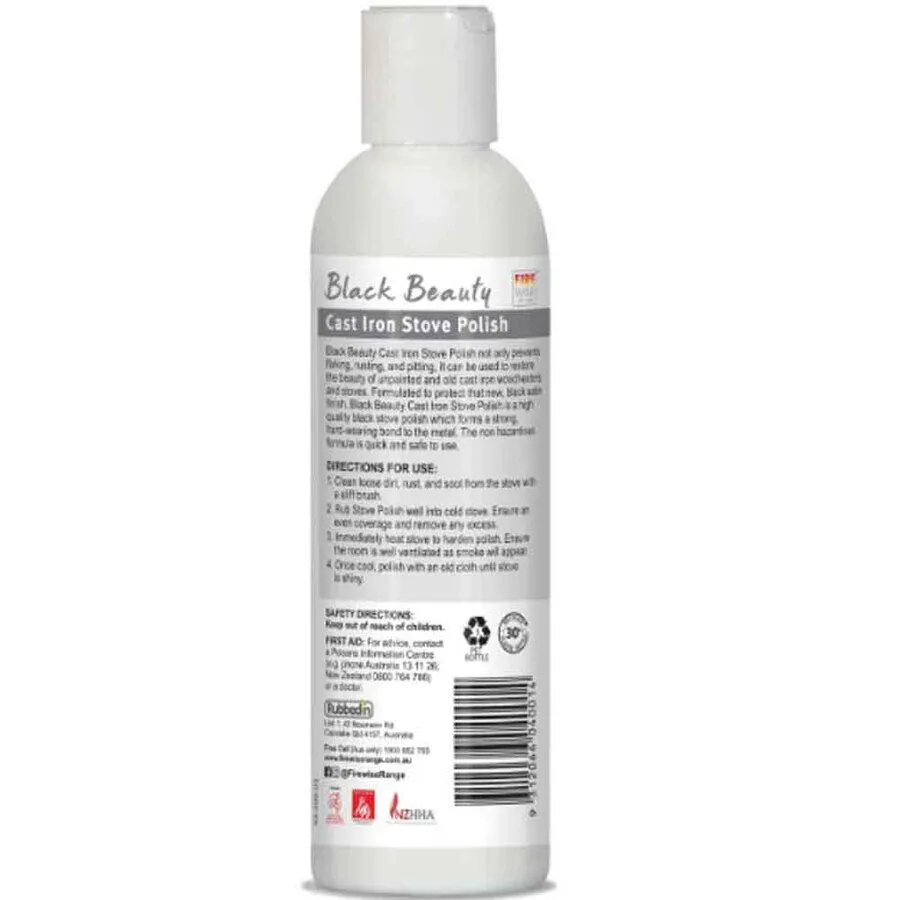 Black beauty Cast Iron Stove Polish can be used to restore the beauty of unpainted cast iron woodheaters and stoves in addition to preventing flaking, rusting, and pitting. Black Beauty Cast Iron Stove Polish is a quality black stove polish that is formulated to protect that brand-new, black satin surface and creates a solid, long-lasting bond with the metal. The non-hazardous composition is simple to use and secure.