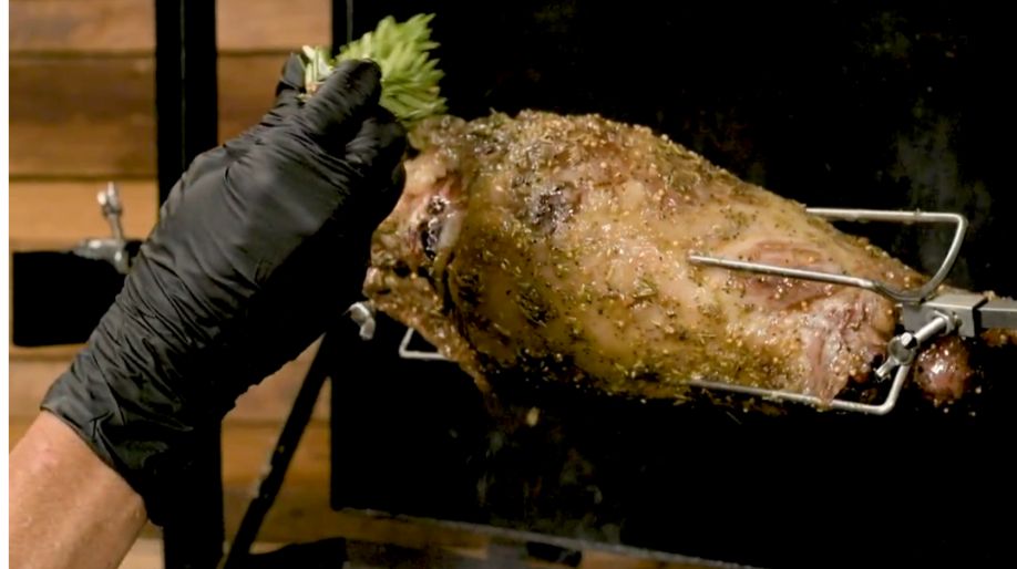One challenge with spit-roasting lamb is balancing the bone on the skewer. If you find it tricky, ask your butcher to debone and truss it. Another option is to cook the deboned leg flat in a rotisserie basket. Either way, this cook is versatile and foolproof, even if you’re new to spit roasting.