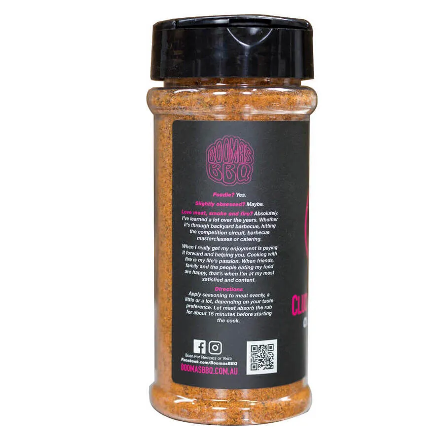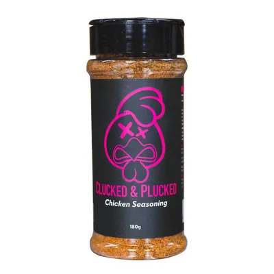 Boomas BBQ Clucked and Plucked Chicken Seasoning. Is perfect for chicken, duck and even pork. As Boomas rhyme goes "If it clucks you're in luck, even works for a low flying duck, or if a pig could, you would" Luckily his rubs are better than his rhymes.