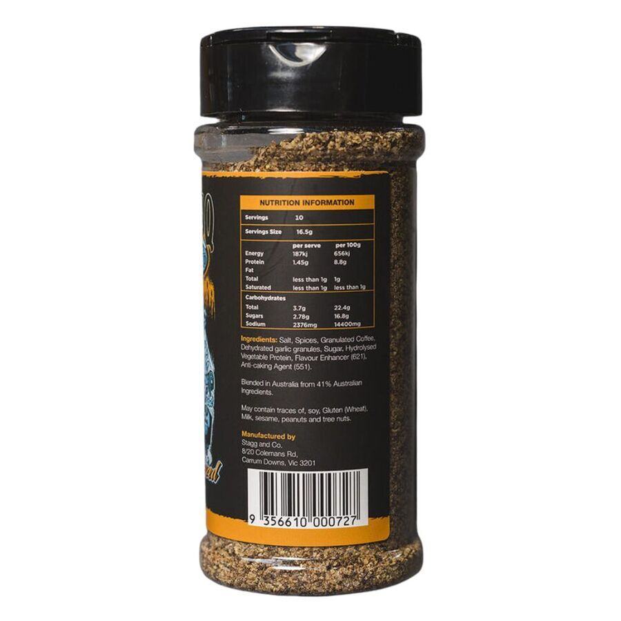 Boomas Grazed and Blazed is primarily pepper and salt, as any good beef rub should be, but with a hint of coffee, punchy garlic.