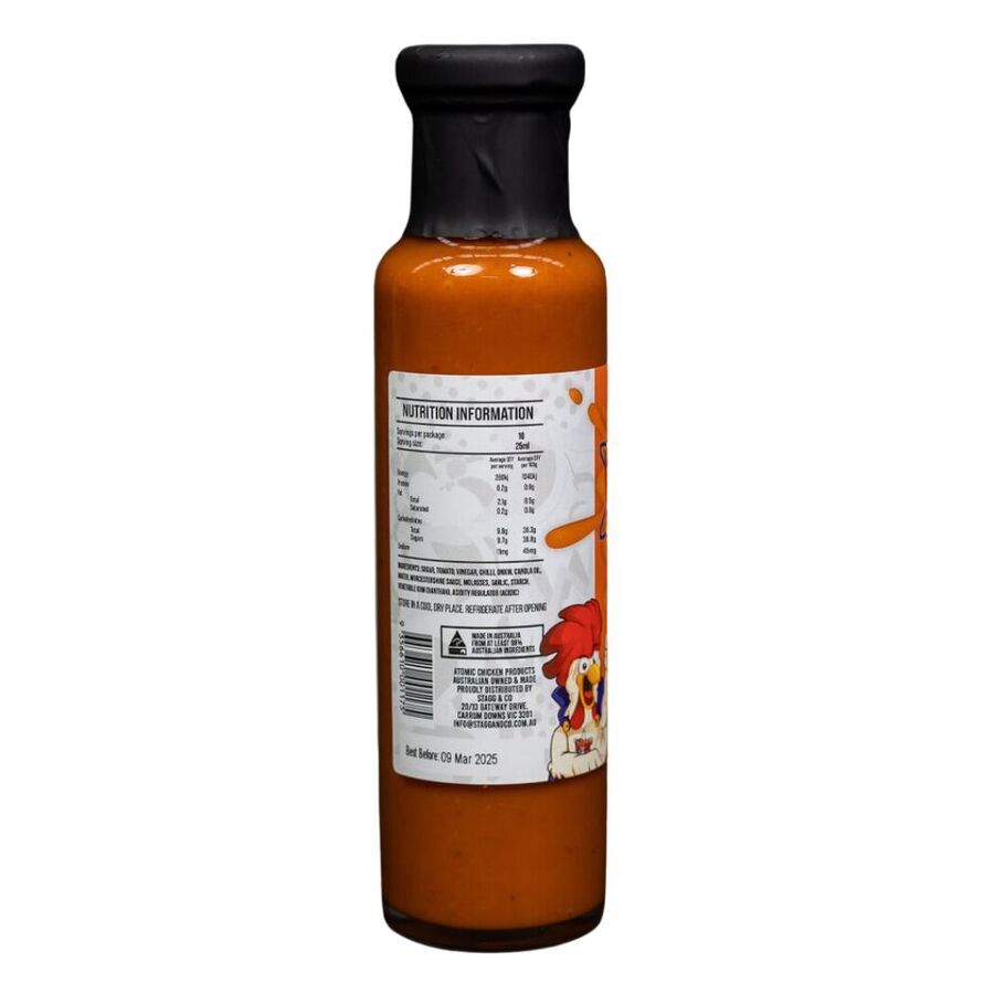Introducing Atomic Chicken Buffalo Hot Sauce, the fiery and flavourful addition that will take your meals to new heights of deliciousness! Made with a carefully crafted blend of premium ingredients, this hot sauce is perfect for adding a zing to your chicken wings, burgers, sandwiches, tacos, and more.