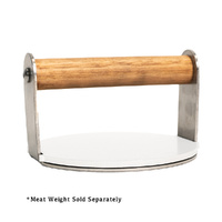 Steak press and burger smasher made of stainless steel. This one-piece wonder is expertly made from 316SS and has no welds, guaranteeing unparalleled sturdiness and endurance. This tool is not only useful but also a fashionable addition to your grill collection, especially when paired with a gorgeous Tasmania oak handle. This press is ideal for crushing burgers and is sure to be a lifelong partner in creating outstanding barbeque.