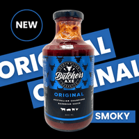 Butchers Axe Original Barbeque Sauce.  A base that is deep, smokey, and perfectly tangy.  Ideal for a real, traditional barbeque experience.