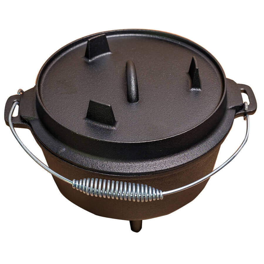 The Cast Iron Dutch Oven & Skillet is pre-seasoned from the factory and is a thick-walled cooking pot with a lid moulded to give a tight fit around the pot. It's perfect for cooking slow-cooked meals and keeps all the moisture and juices in your food.