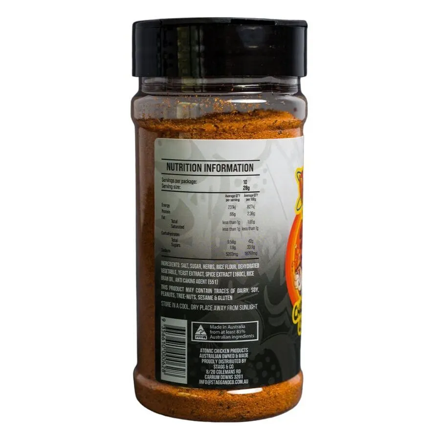 Enjoy an original charcoal flavour on your bbq using this Atomic Chicken Salt seasoning.