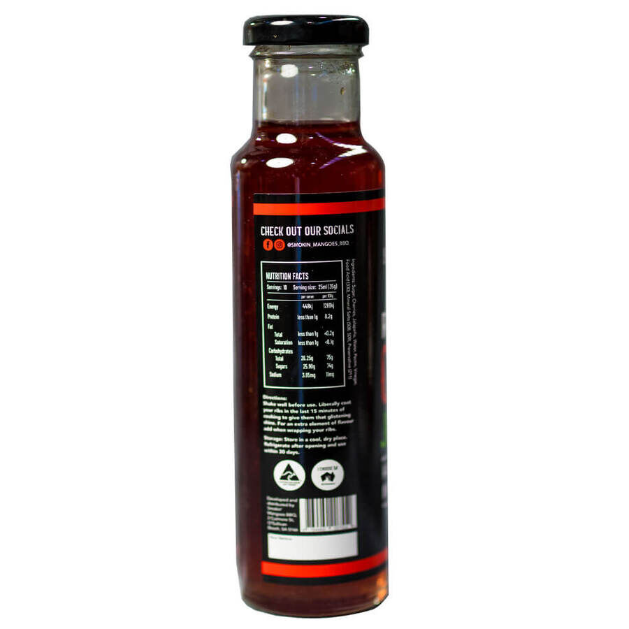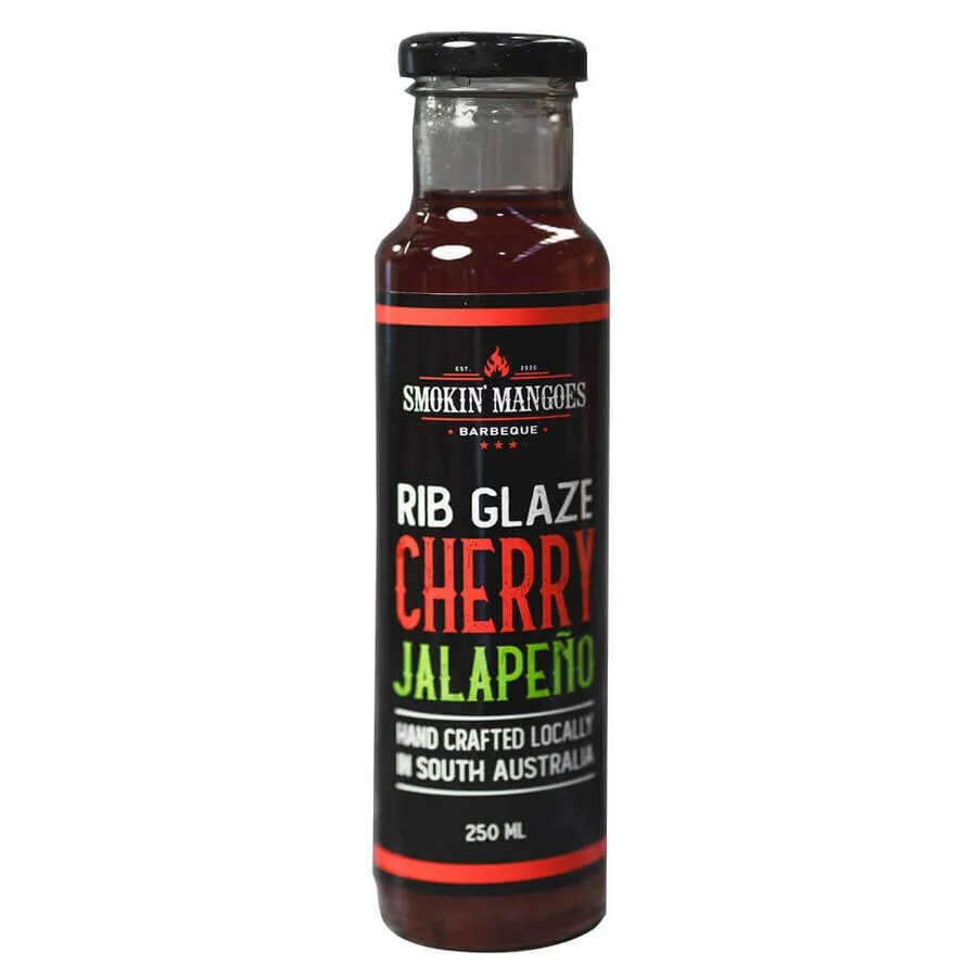 Cherry Jalapeno Rib Glaze by Smokin' Mangoes Barbeque. This carefully prepared, small-batch rib glaze is designed to give your ribs or wings a sweet heat profile that complements their sweetness while also creating a sparkling, eye-catching shine.