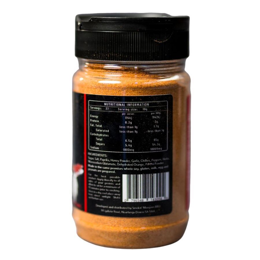 Cluckin' Rib Rub 270g by Smokin' Mangoes Barbeque. Introducing the latest creation from Smokin' Mango: the brand-new Cluckin' Rib Rub. This exceptional seasoning blend is specifically crafted for enhancing the flavour of chicken and ribs, offering an irresistible combination of spices and herbs carefully selected to bring out the natural taste of your preferred meat cuts.