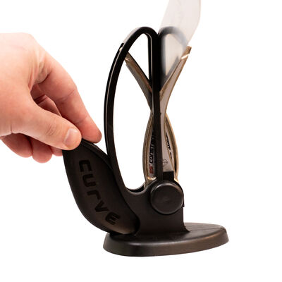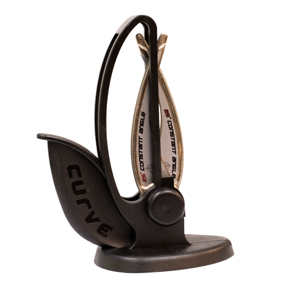 The Curve Sharpener features a unique 25° curved guide that automatically maintains the perfect sharpening angle from heel to tip. Simply keep your blade flat against the guide while pulling through, and the system ensures flawless edge control for professional-grade results.