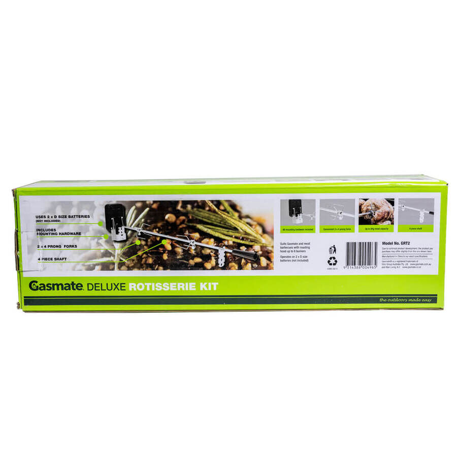 Add to your existing BBQ to impress your guests when you open the hood. The Gasmate Deluxe BBQ Spit Rotisserie Kit 240v is the perfect accessory to help you entertain your guests with a delicious spit roast.