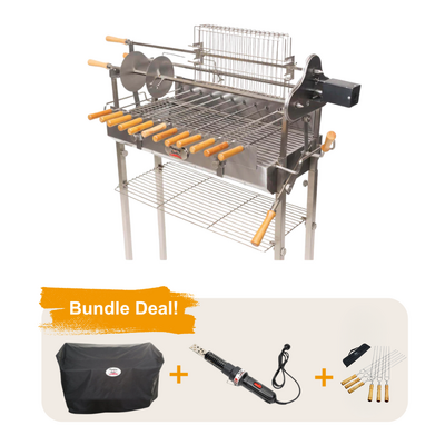 With heavier-duty construction, thicker skewers, a warming rack, wheels for portability, and improved gear durability, this model far exceeds the quality of standard Cyprus grills. Designed and tested in Australia, it’s a proven performer built to handle Aussie BBQ expectations.