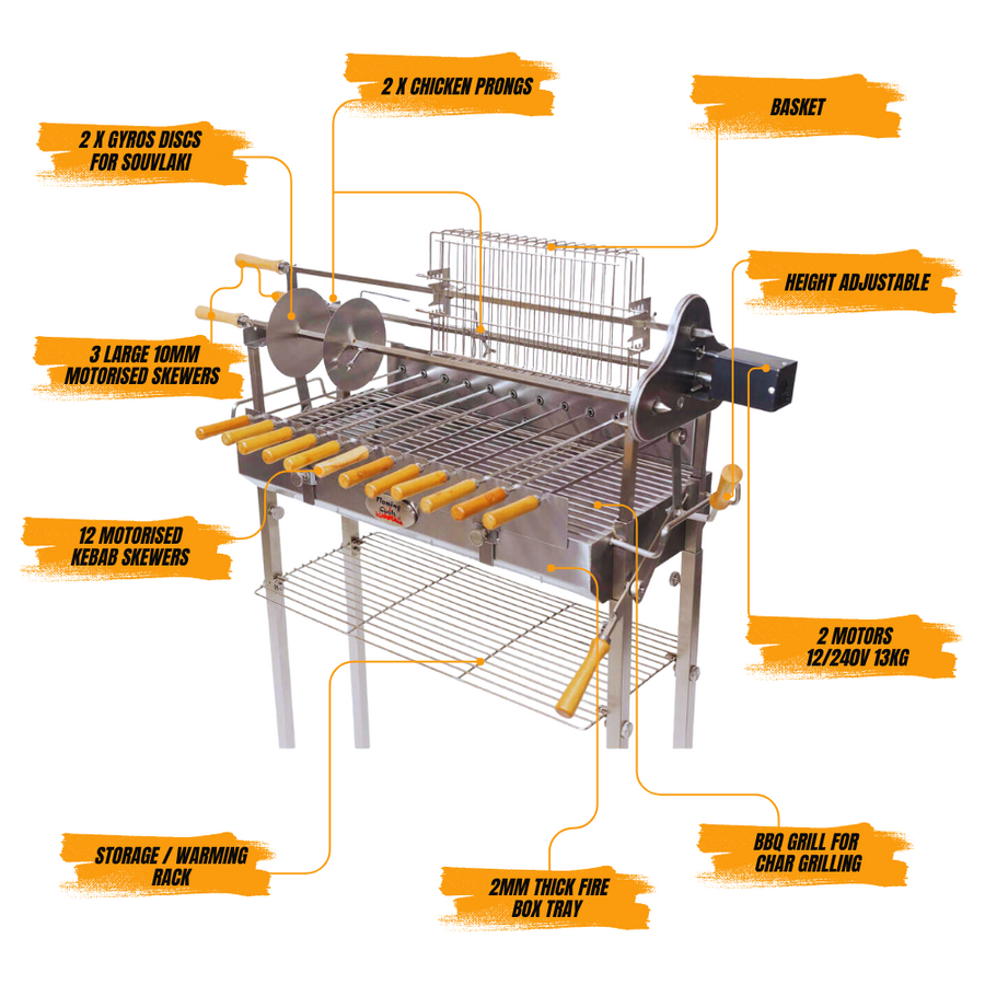 Cyprus Spit - Original Cypriot Souvla | Flaming Coals - Pro SP004-13E-PROBUNDLE RRP $883.95 Now $749.00 You Save $134 Add to Cart Sale Limited Stock