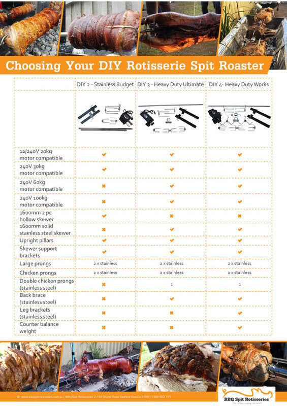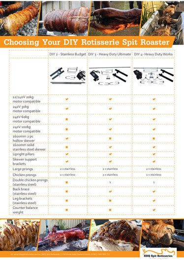 Equipped with a 240V motor (MO001) rated for 30kg capacity, this set can handle anything from small roasts to larger cuts of meat. The motor ensures smooth, reliable rotation for perfectly even cooking every time.