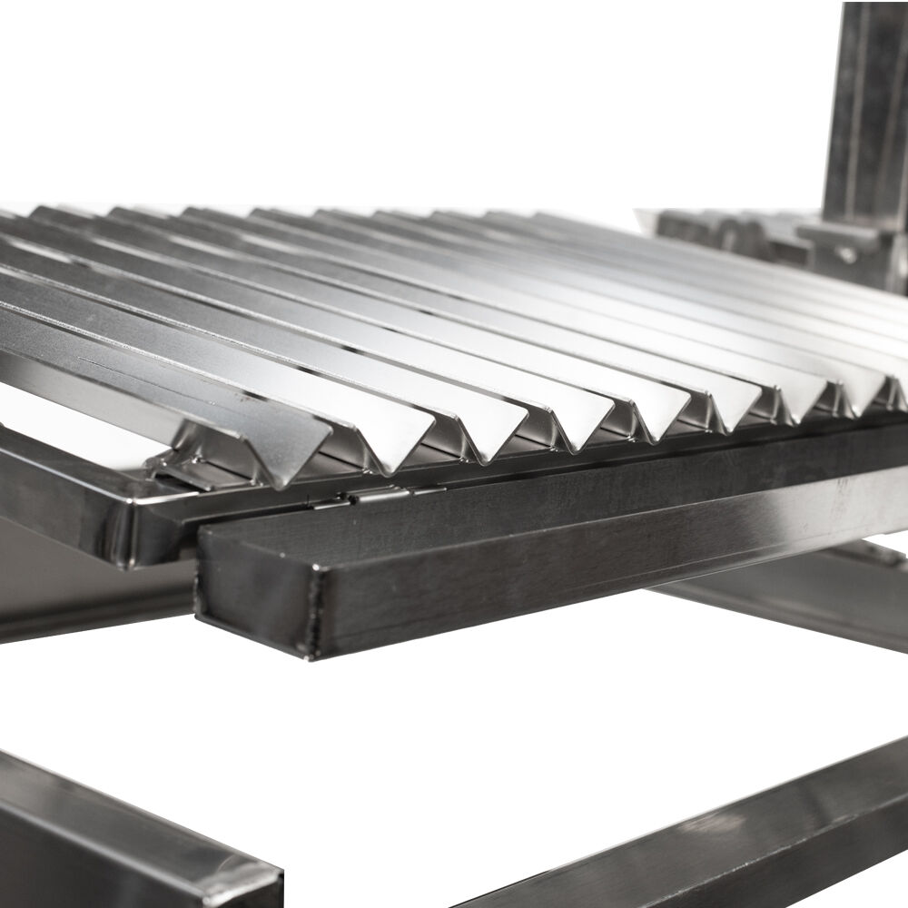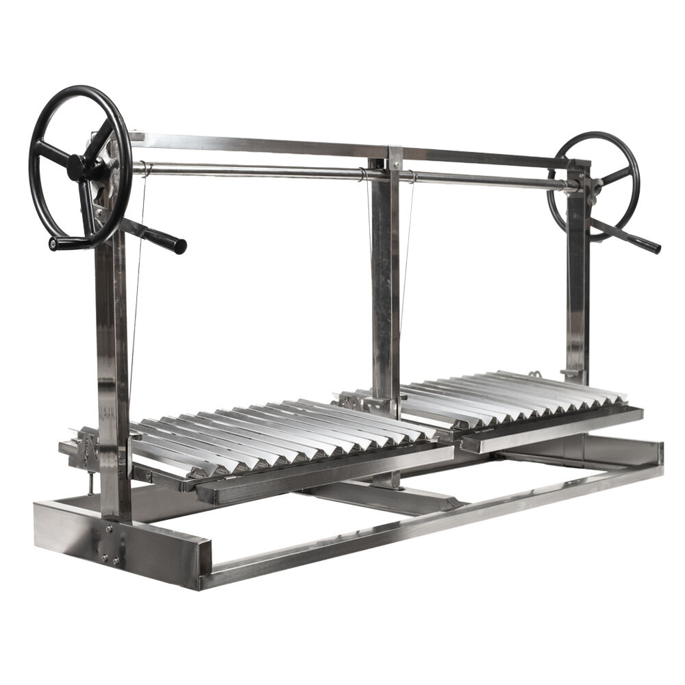 Featuring V-shaped stainless steel grills that slope forward, this design captures fat and juices, directing them into removable trays. This reduces flare-ups, delivers consistent heat, and gives your food that signature smoky Asado flavour.