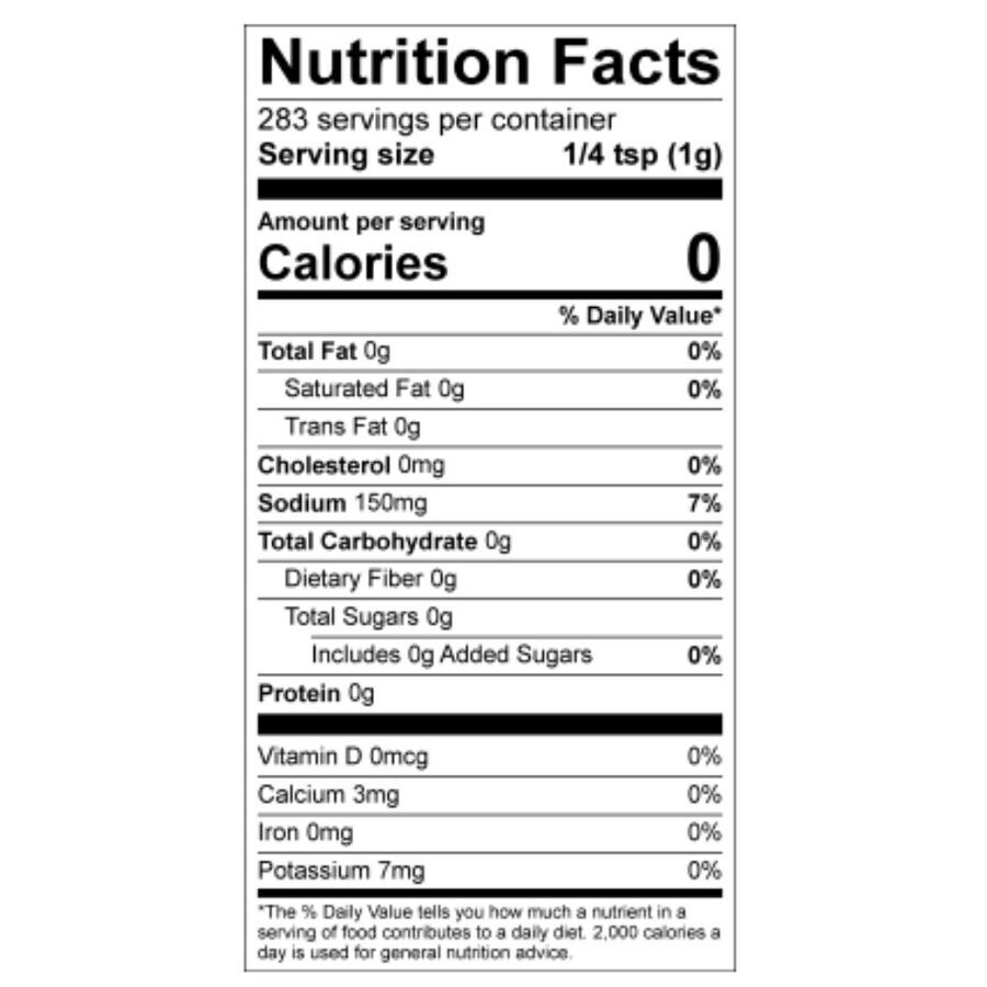 INGREDIENTS: Sea Salt, Chili Pepper And Other Spices, Dehydrated Garlic & Onion, Sugar, Paprika, Disodium Inosinate & Disodium Guanylate, Natural Hickory Smoke Flavour, Citric Acid, And Not More Than 2% Soybean oil & Silicon Dioxide Added As Processing Aids.