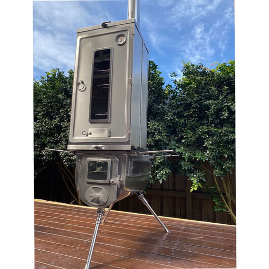 Fastfold Smoker Large - Winnerwel Model: 910437 Suitable For: Smoking and roasting beef, pork, chicken, and ribs Cooking vegetables, fish, or large cuts of meat Use as a free-standing smoker Campers, hunters, anglers, and touring enthusiasts Backyard or patio smoking when not exploring the outdoors The Winnerwell Fastfold Smoker Large is a versatile stainless steel smoker built for outdoor adventurers who love flavour, flexibility, and function. Designed for use with Winnerwell Woodlander or Nomad L-sized stoves, gas burners, or as a standalone unit, it delivers consistent results whether you’re smoking, baking, or slow-cooking. Compact, durable, and easy to set up - it’s your ultimate portable smoker for every outdoor journey. All-in-One Outdoor Smoker The Winnerwell Fastfold Smoker Large can be used in multiple ways - as a hot smoker, warm smoker, or oven. Whether you’re riverside, deep in the bush, or cooking on your patio, this smoker adapts to your cooking style and environment with ease. Flatpack Design for Portability Designed for adventurers, the Fastfold system allows the smoker to dismantle completely and fold flat for compact storage. It’s perfect for travel, fitting neatly into vehicles or gear bags without taking up space. Precision Cooking Made Simple The smoker comes with an inbuilt thermometer for accurate temperature monitoring and three removable racks offering ample room to smoke or hang food. Whether you’re cooking multiple cuts of meat or smoking whole chickens, this chamber gives you complete control. Built-In Glass Viewing Window Keep an eye on your food without losing heat or smoke. The integrated glass window lets you visually monitor your cook, helping you achieve that ideal smoky colour and flavour every time. Rugged Stainless Steel Construction Built from AISI304 stainless steel, this smoker is made to last. Its corrosion-resistant material ensures durability in harsh conditions and makes cleaning simple, keeping your smoker ready for the next adventure. Usage Applications As a Hot Smoker, the heat can be supplied by a Winnerwell Woodlander L-sized Stove, Nomad Stove, or an external gas burner. When using it on a Winnerwell stove, remove the top lid of the stove before attaching the smoker box. The charcoal in the stove’s firebox provides heat to the smoking wood tray inside the smoker, creating both smoke and heat for perfect results. Transform your smoker into an oven by removing the smoking wood tray. Place it directly on a Winnerwell L-sized Stove once the wood has burned down into hot coals. Install the smoker on top of the stove, place your food directly on the rack, and bake to perfection - ideal for bread, roasts, or baked vegetables. Operate the smoker without an external heat source by lighting a small amount of smoking timber on the wood tray. This method delivers gentle, low-temperature smoking, ideal for infusing delicate flavours into fish, cheese, or vegetables. Inclusions: Features Specifications Material Made from AISI304 stainless steel for strength, corrosion resistance, and easy cleaning Storage Dimension 650mm (L) x 315mm (W) x 100mm (H) for compact packing Assembled Dimension 365mm (L) x 340mm (W) x 730mm (H) providing generous cooking space Weight 9.5kg for easy transport and stability during cooking Racks Includes 3 removable racks for flexible cooking and hanging options Viewing Window Built-in glass window allows visual monitoring without opening the smoker Thermometer Integrated thermometer provides accurate temperature control Compatibility Fits Winnerwell Woodlander and Nomad L-sized stoves, gas burners, or can be used freestanding Cooking Functions Operates as a hot smoker, warm smoker, or oven for ultimate versatility Note: Smoker only, Winnerwell stove is not included Bring the Fire to Your Backyard Discover the power of versatility with the Winnerwell Fastfold Smoker Large - a smoker that adapts to your cooking style wherever you go. Order now for fast shipping Australia-wide and enjoy hassle-free 60-day returns. Smoke it, bake it, and share the flavour of adventure with every meal. Still Not Convinced? We invite our customers to review our products and services regularly, and are very happy to say our feedback scores are excellent across multiple platforms. Trustpilot Review Google Review Facebook Review Want to Know More About Who You're Buying From? Read more about us and meet our crazy, mad team of barbecuers who love nothing more than to chew the fat, helping turn customers just like you into the ultimate backyard BBQ hero.