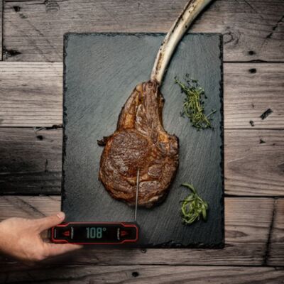 The instant read thermocouple probe delivers rapid, highly accurate temperature readings so you can check doneness in seconds. NSF certification and a NIST traceable calibration certificate provide professional grade confidence every time you cook.